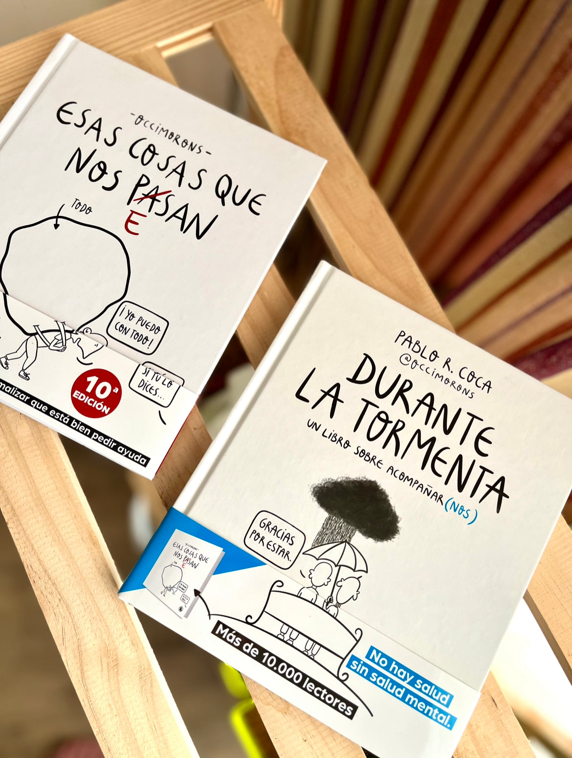 "Esas cosas que nos pesan" habla sobre el dolor psicológico y la importancia de pedir ayuda. "Durante la tormenta" muestra el proceso de acompañar a alguien que lo está pasando mal. Porque ver sufrir a esa persona que queremos también nos duele. Son libros con contenido inédito y ojalá los sintáis como un abrazo. Gracias por leerme.